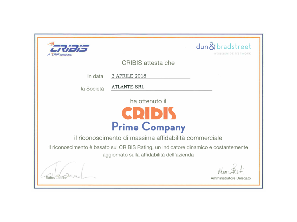 Atlante si conferma una CRIBIS PRIME COMPANY